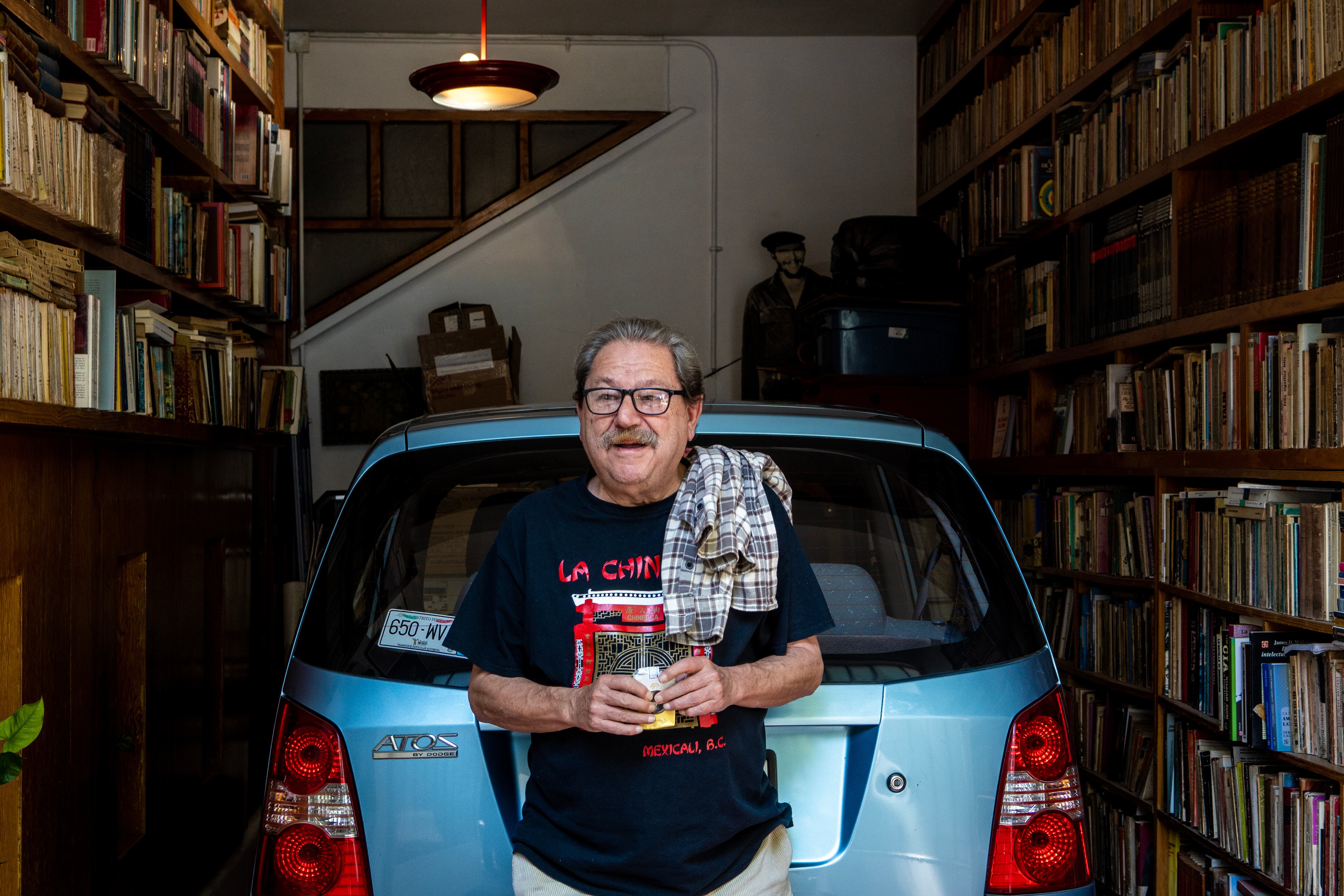 La puerta del garaje se abre dejando ver un pequeño coche rodeado de libros, en el que se apoya Paco Ignacio Taibo II (Gijón, 74 años), escritor español apasionado por la historia de México. Se siente tan atraído por ella que no solo escribe sobre ella, también mantiene eternas discusiones. Esto es lo que atestigua Patria, uno de sus títulos más populares. De niño, una enfermedad lo mantuvo postrado en cama, y fue allí donde comenzó su amor por la lectura y su necesidad de tener los libros cerca.